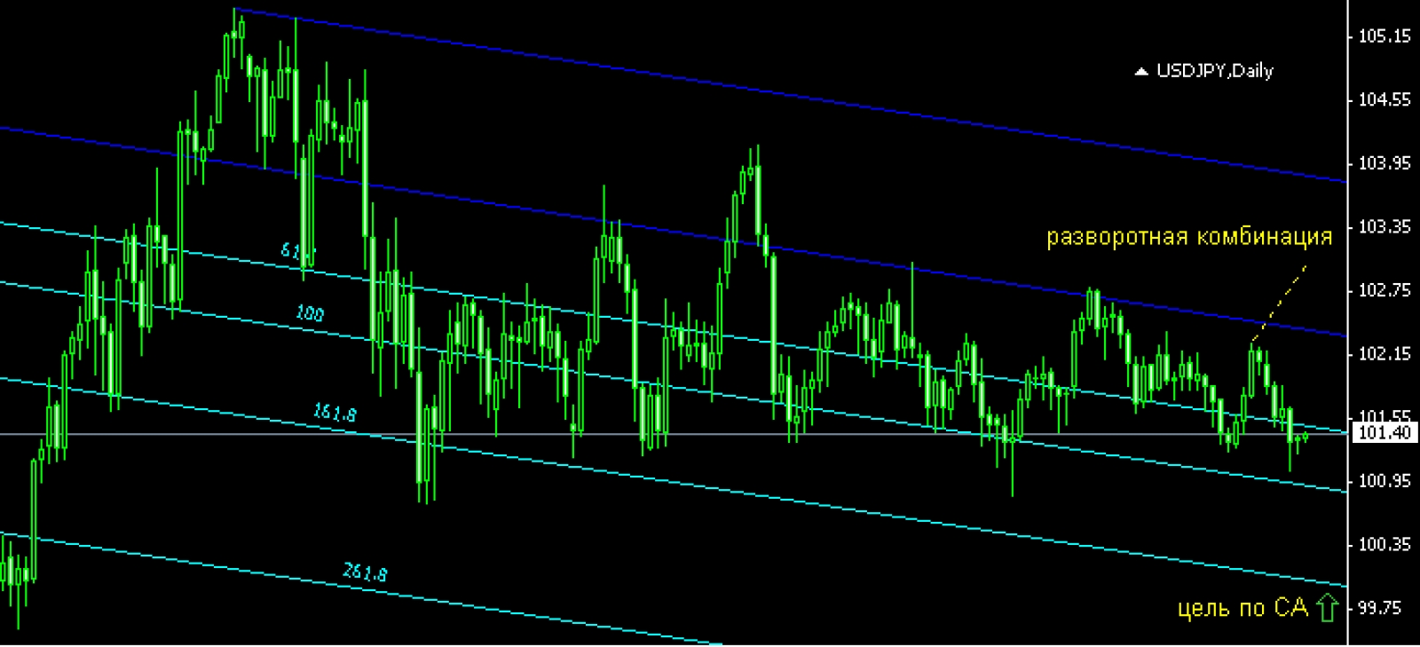 Артём, цена пошла конечно не в ту сторону, наверно уже отыграла предедущим подьемом или ожидали более высокую сатвку, но на корекции на уровне 23.6 можно было войти и получить прибыль около 50 пп при стоп лосе на 38.2 в 15 пп, я об это говорил