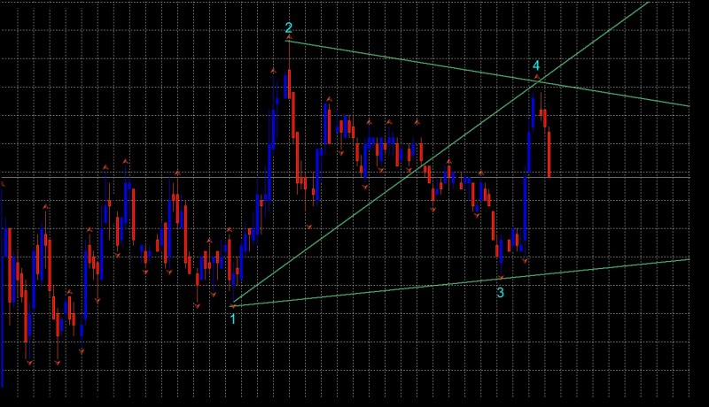 Рустам, если цена от вашей нижней линии канала пойдет вверх, то возможно ваш канал и съиграет роль, но все-таки важнее я считаю оранжевый на моем шаблоне МТ4, так как у него больше точек соприкосновения с каналом