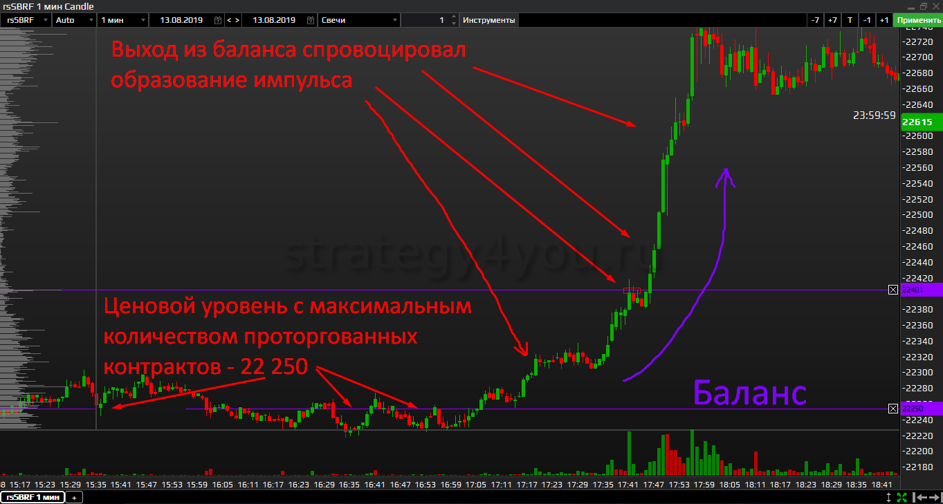 За счет боковых уровней силы объема легко определяется характер ценового сопротивления — наличие на участке активных покупок и продаж или отсутствие интереса к сделке. По полосам определяются уровни и паттерны для торговли.
