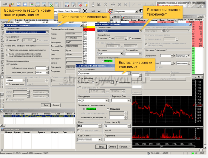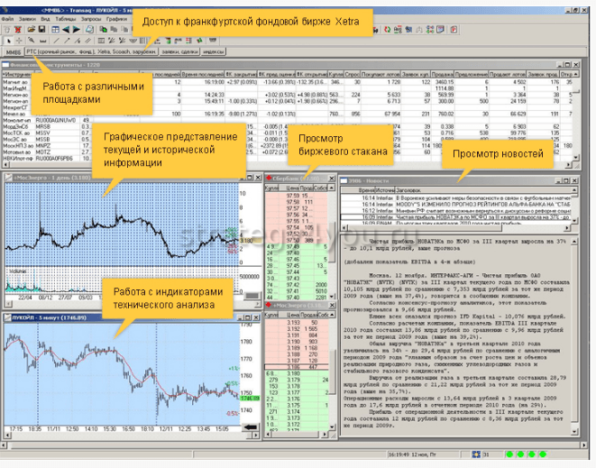 - Войти в систему и приступить к выставлению заявок на выбранном рынке: фондовом, валютном, срочном.