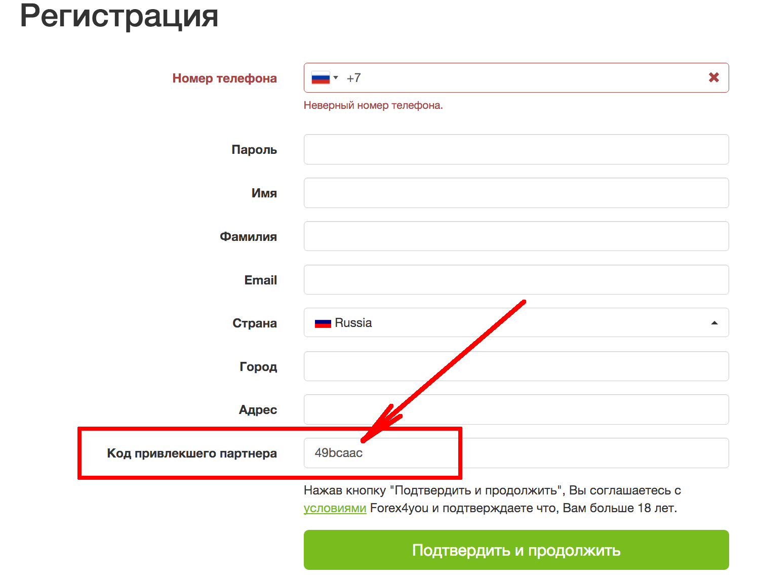 И для уверенности заводите вручную Аффид в разделе КОД Партнера на странице регистрации — 49bcaac