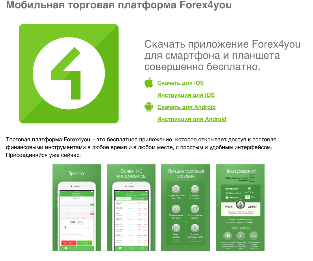 Мобильная торговая платформа брокерской компании Forex4you – это одновременно и личный кабинет, и торговый терминал в Вашем телефоне на Android или iOS: