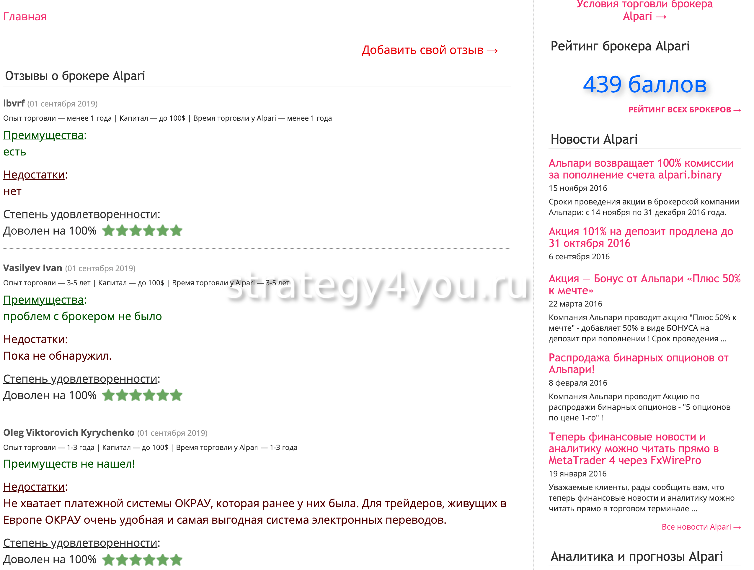 Реальные ли отзывы об Альпари