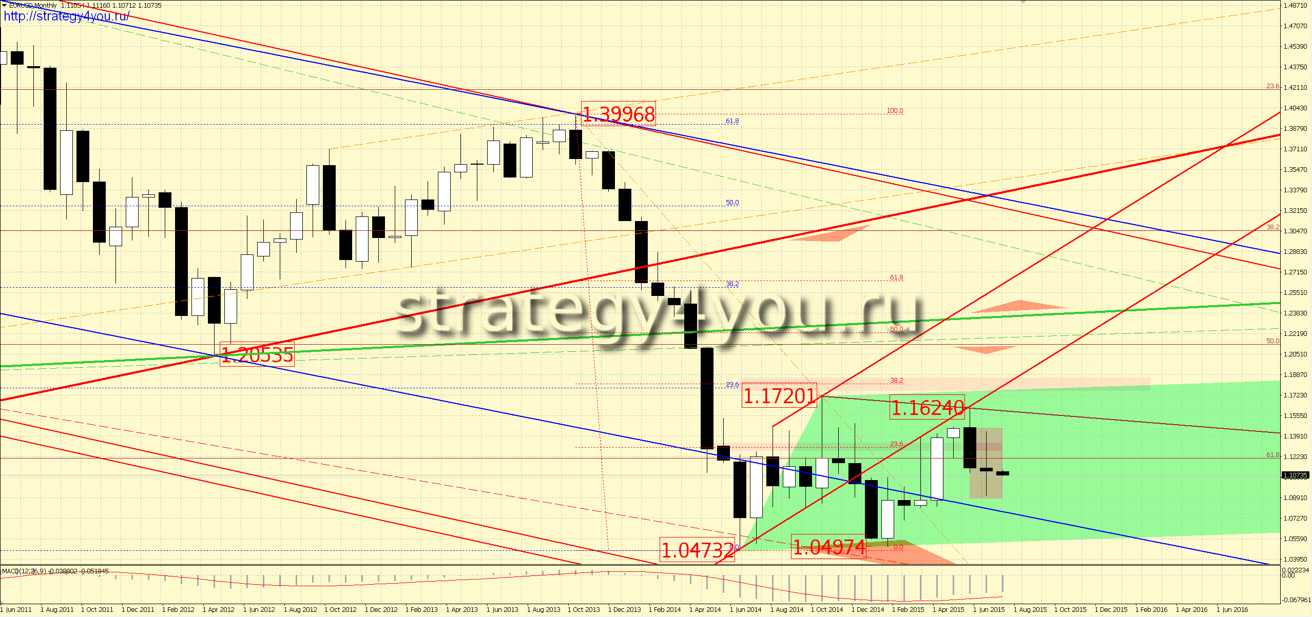 Читать далее1) Неделя закрыта белой свечей, но отбоя от красной линии тренда (она же коричневая на нашем обычном шаблоне) — не получили! Хотя линия важна и я предполагаю что от нее отбой все-таки наиболее вероятен.