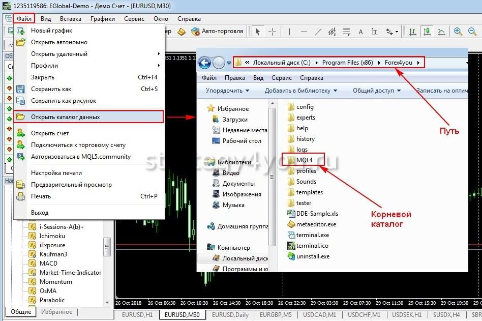 Как установить (добавить, вставить, загрузить) индикатор в МТ4 (метатрейдер 4, mt4)