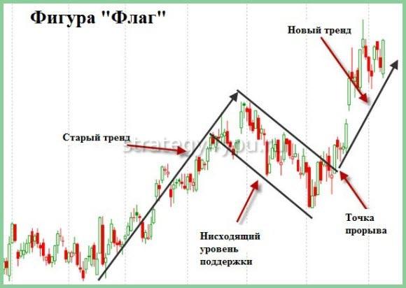 Фигура флаг в техническом анализе (в трейдинге на форекс): правила пробития и входа в сделку