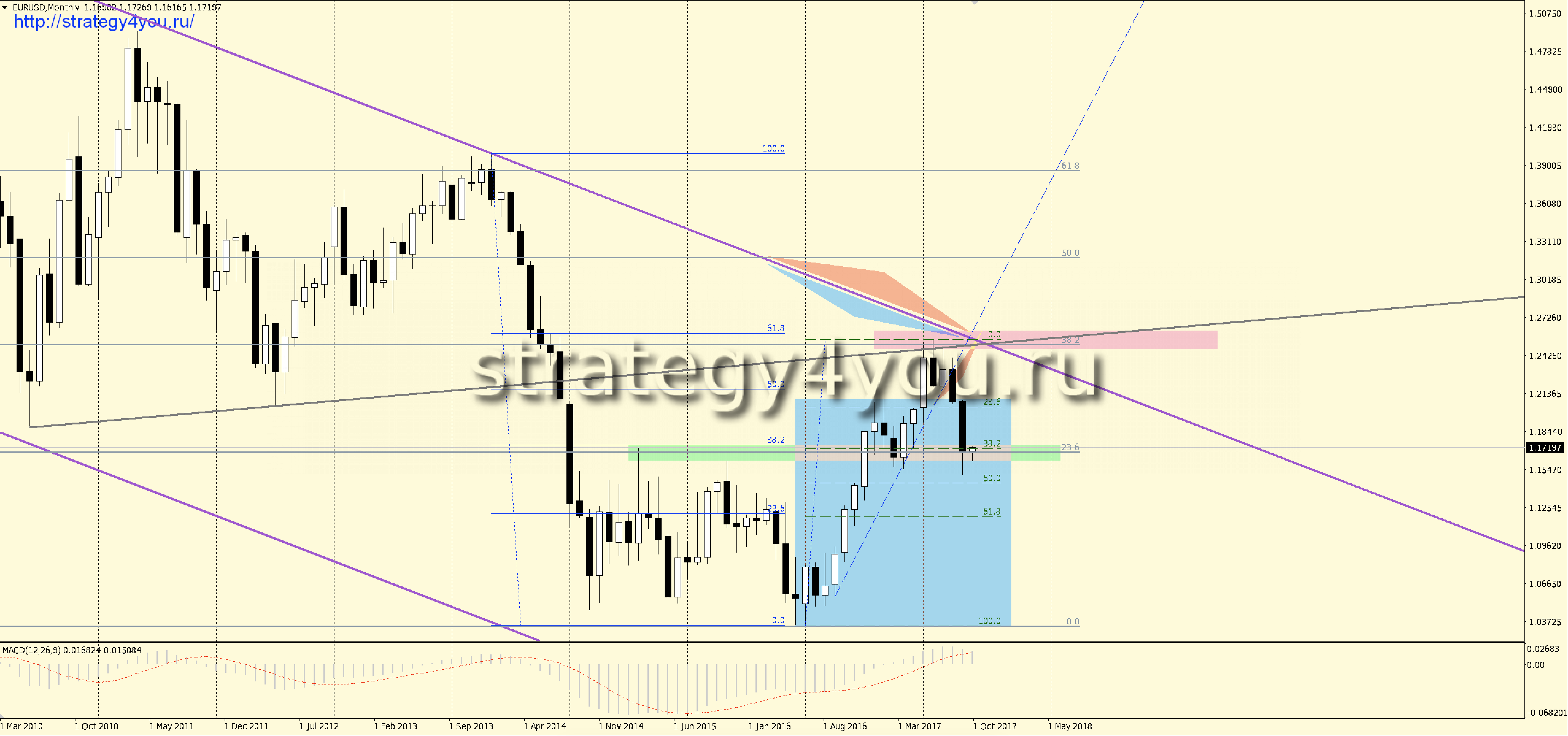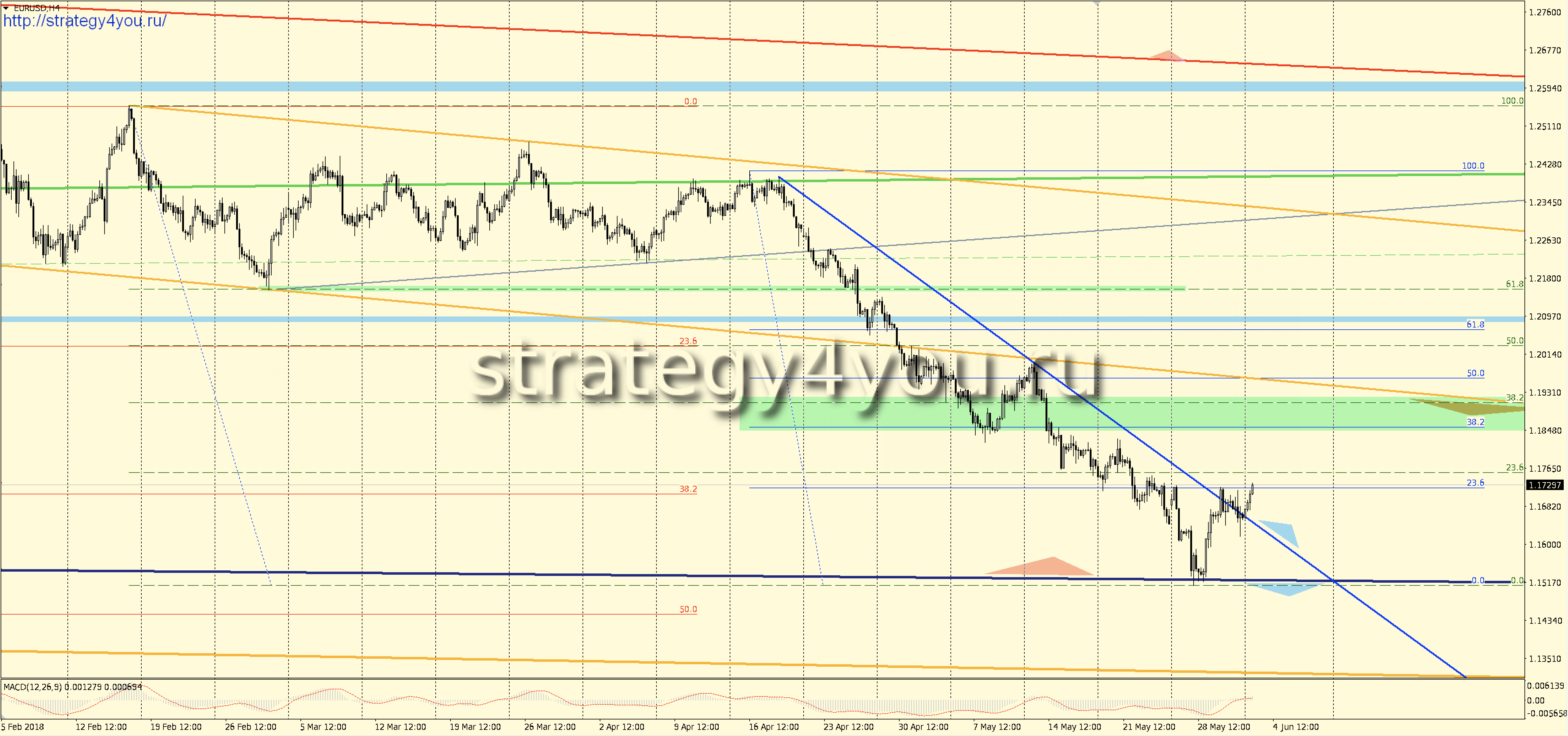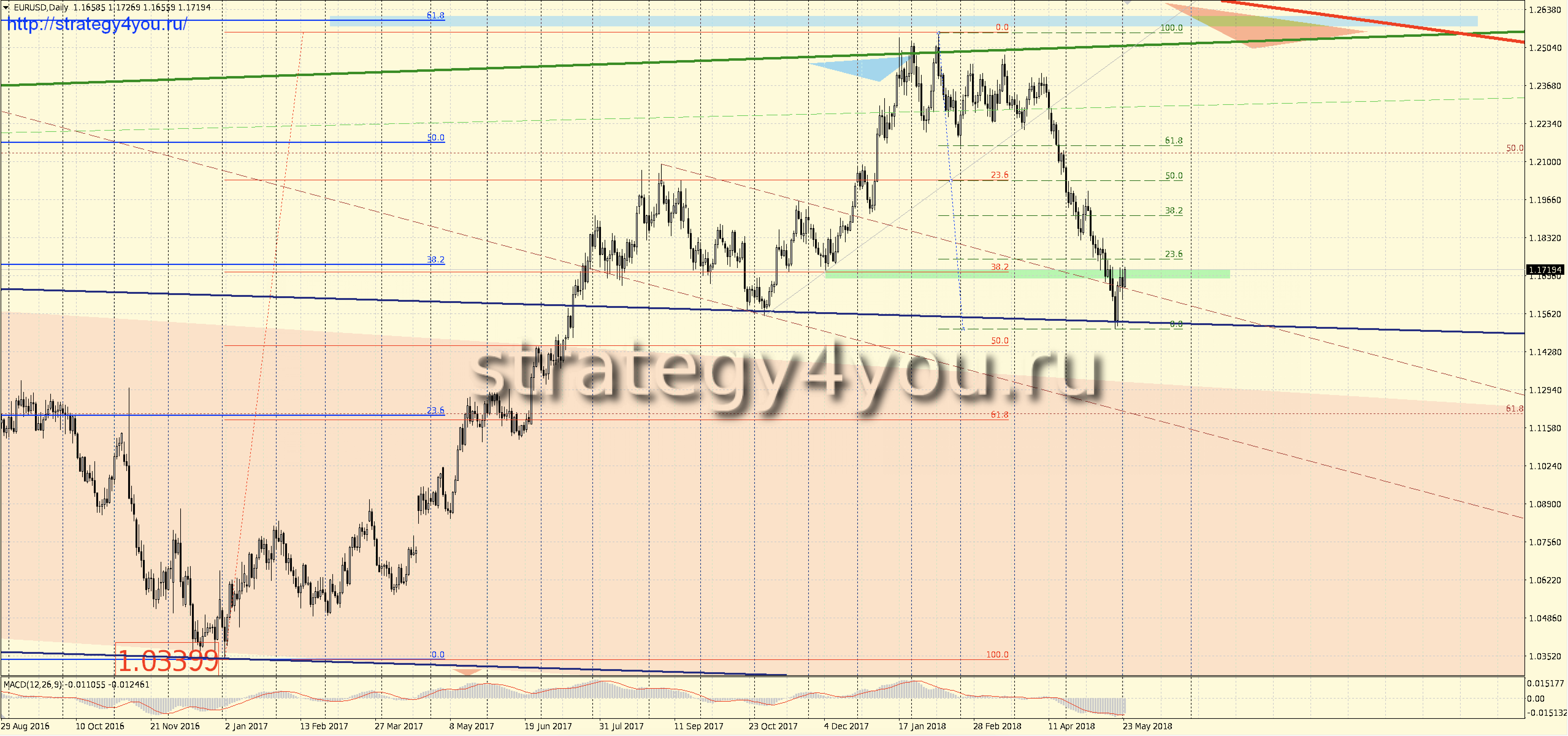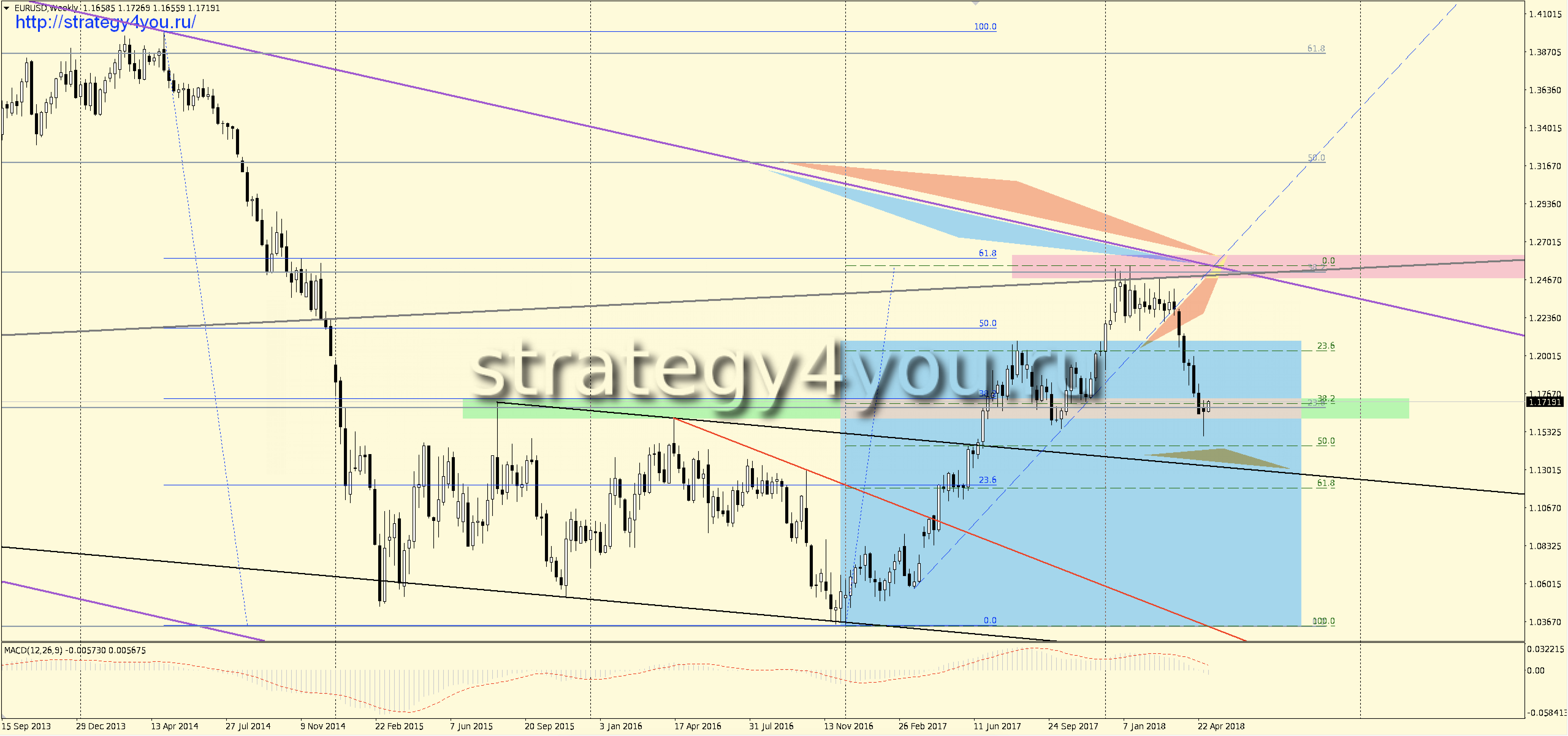 Видео прогноз + сигналы по EURUSD/евро-доллар на июнь-июль-АВГУСТ 2018 + шаблоны МetaТrader 4 для основных графиков: W1-D1-H1 с прорисованными на них сигналами для интервалов H1-H4