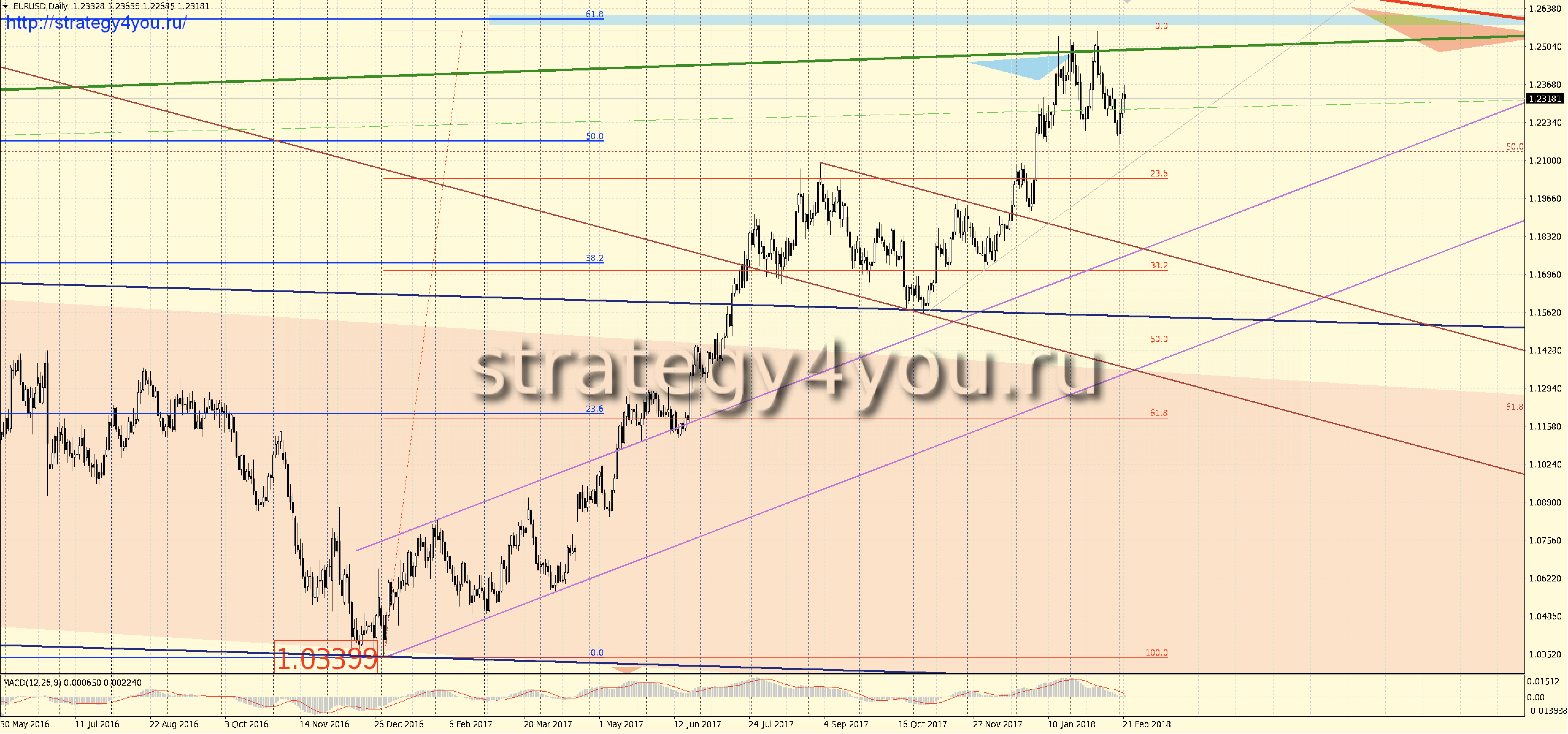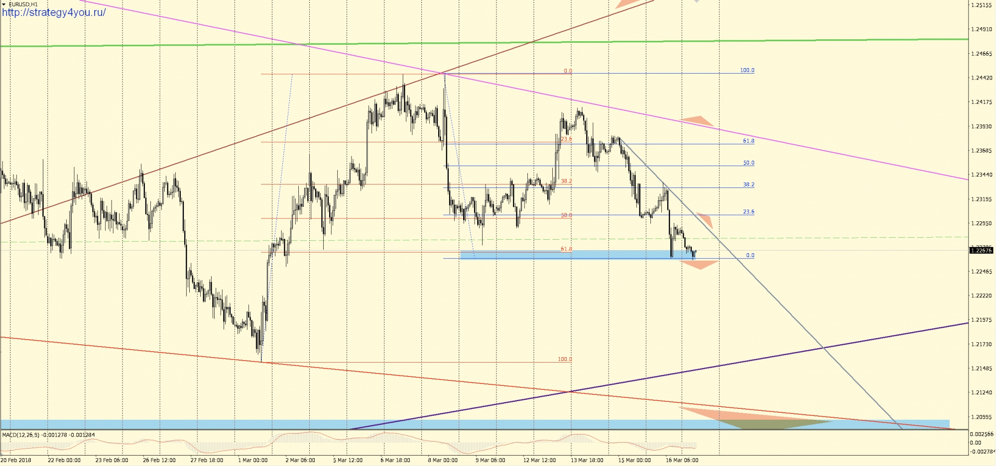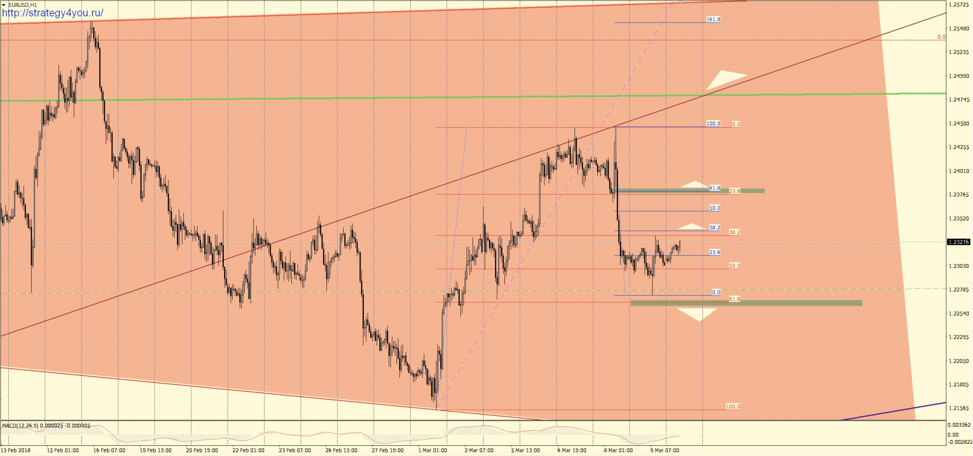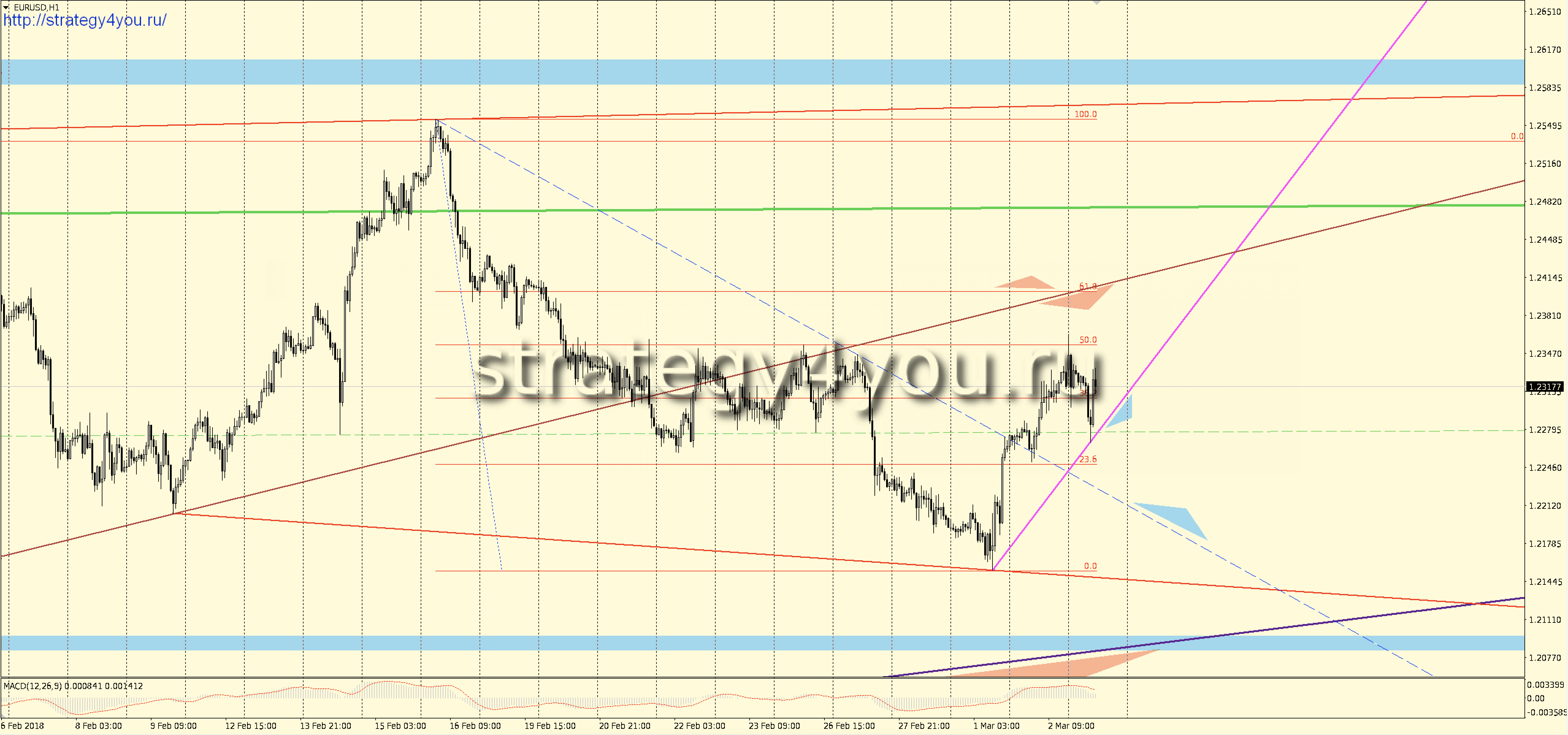 Видео прогноз EURUSD/евро-доллар на март 2018 + набор шаблонов МetaТrader 4 для графика: W1-D1-H1 с сигналами для интервала H1-H4