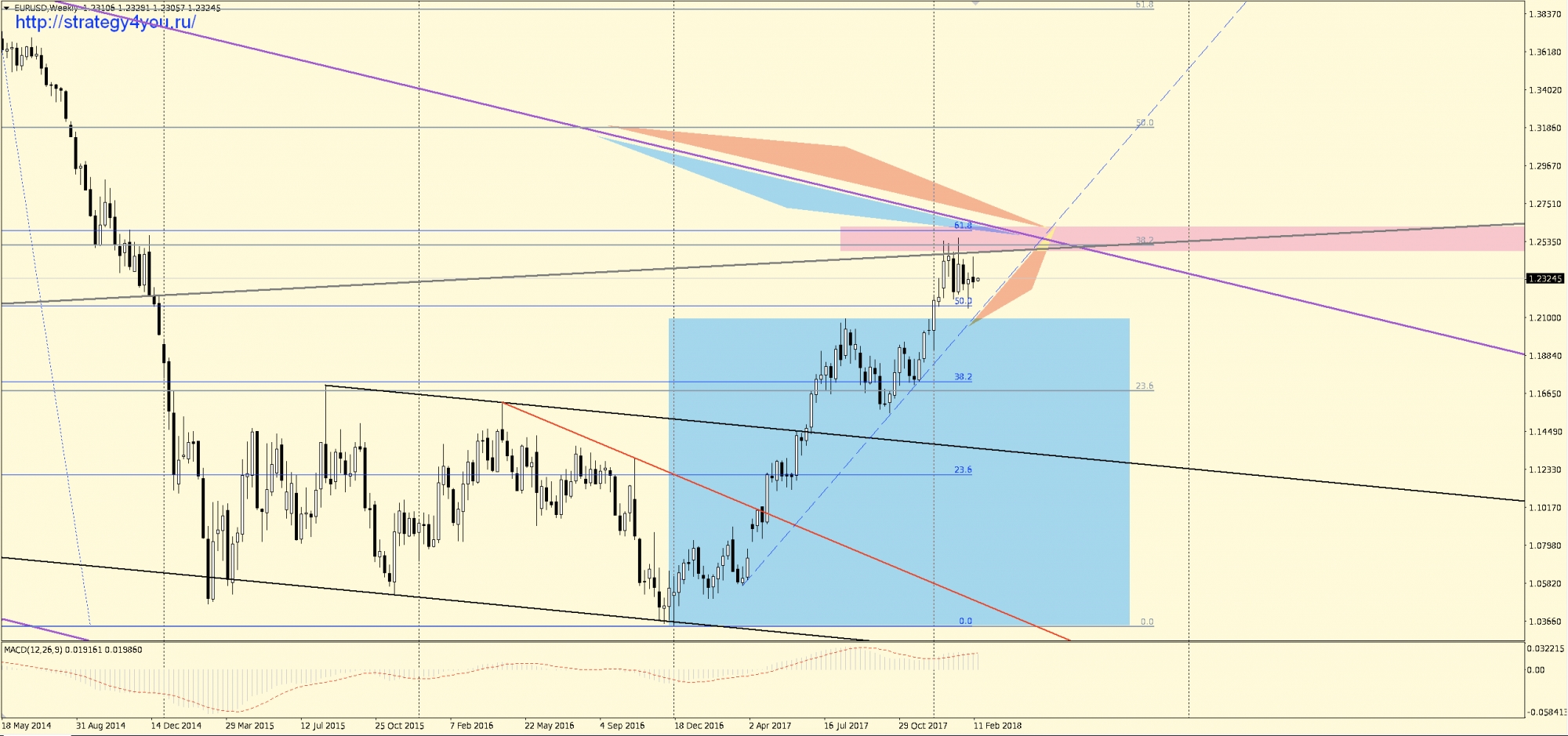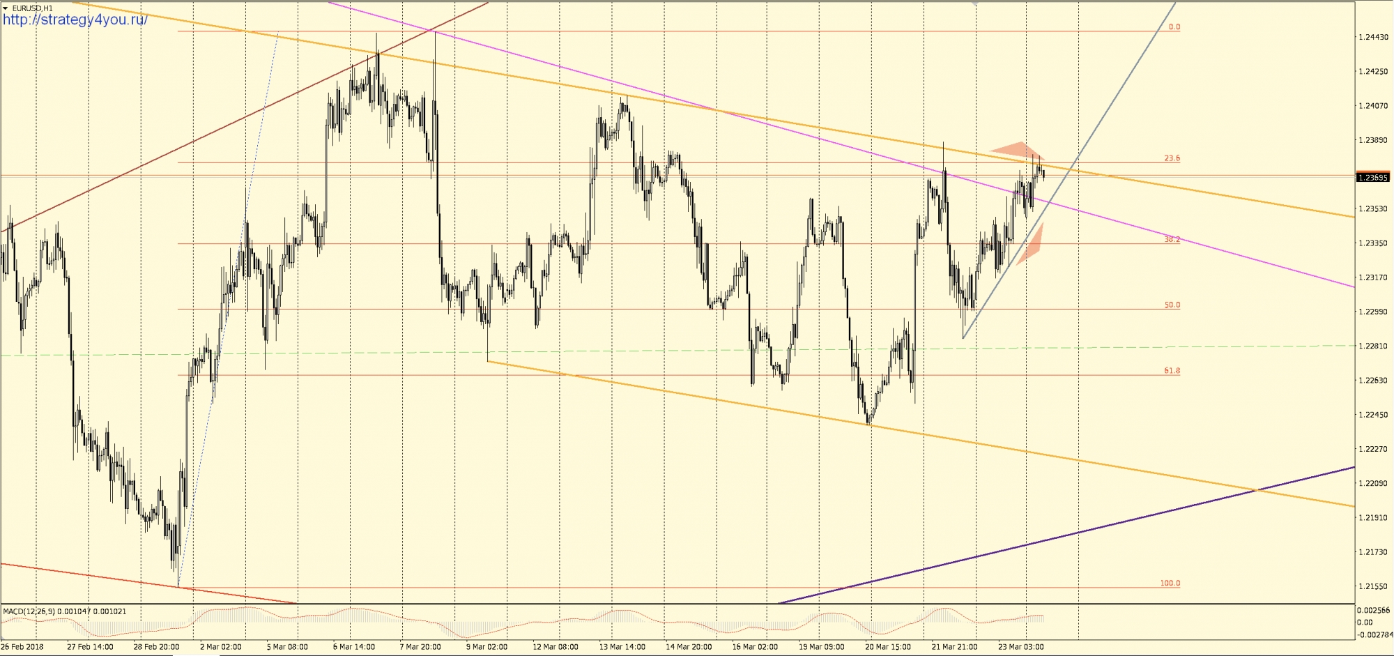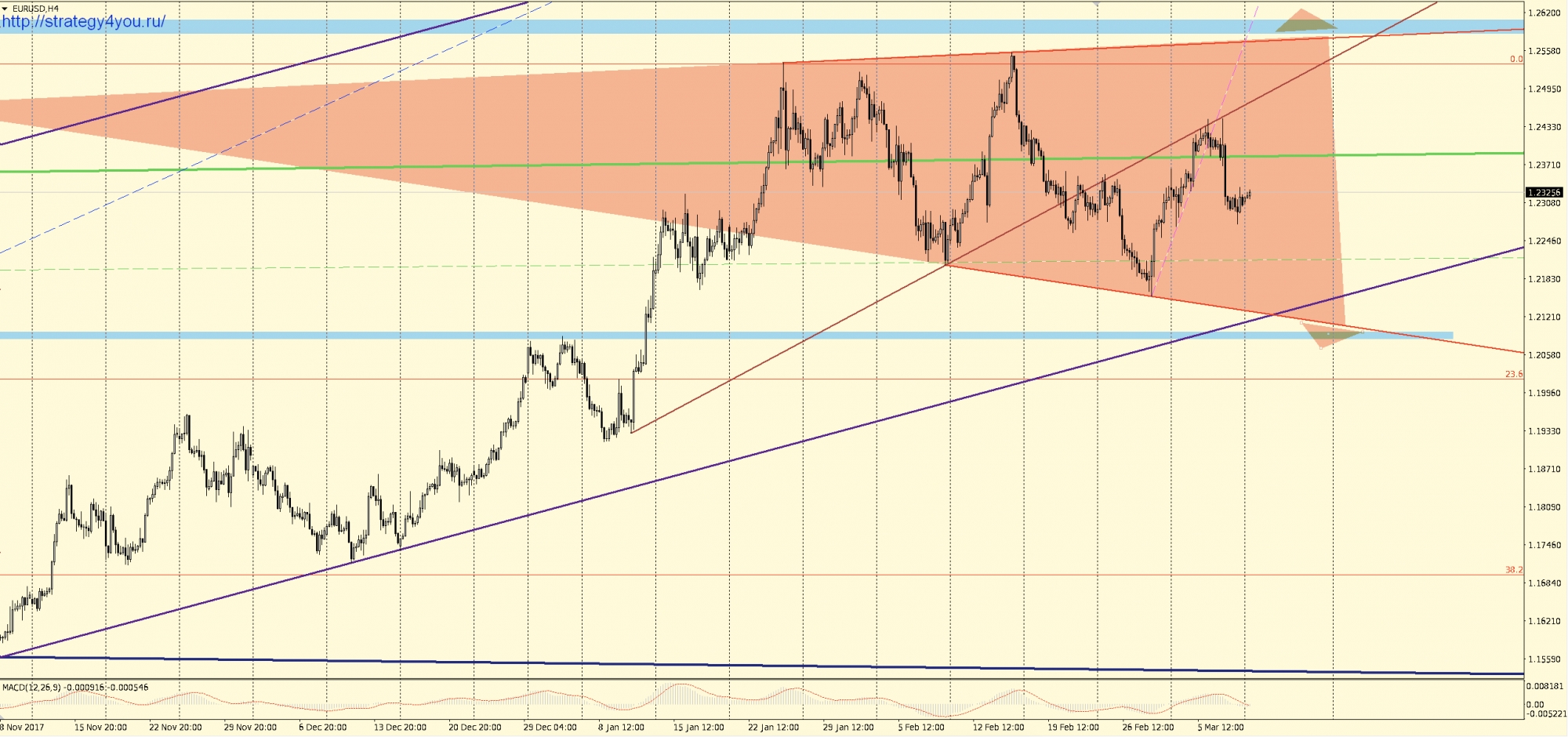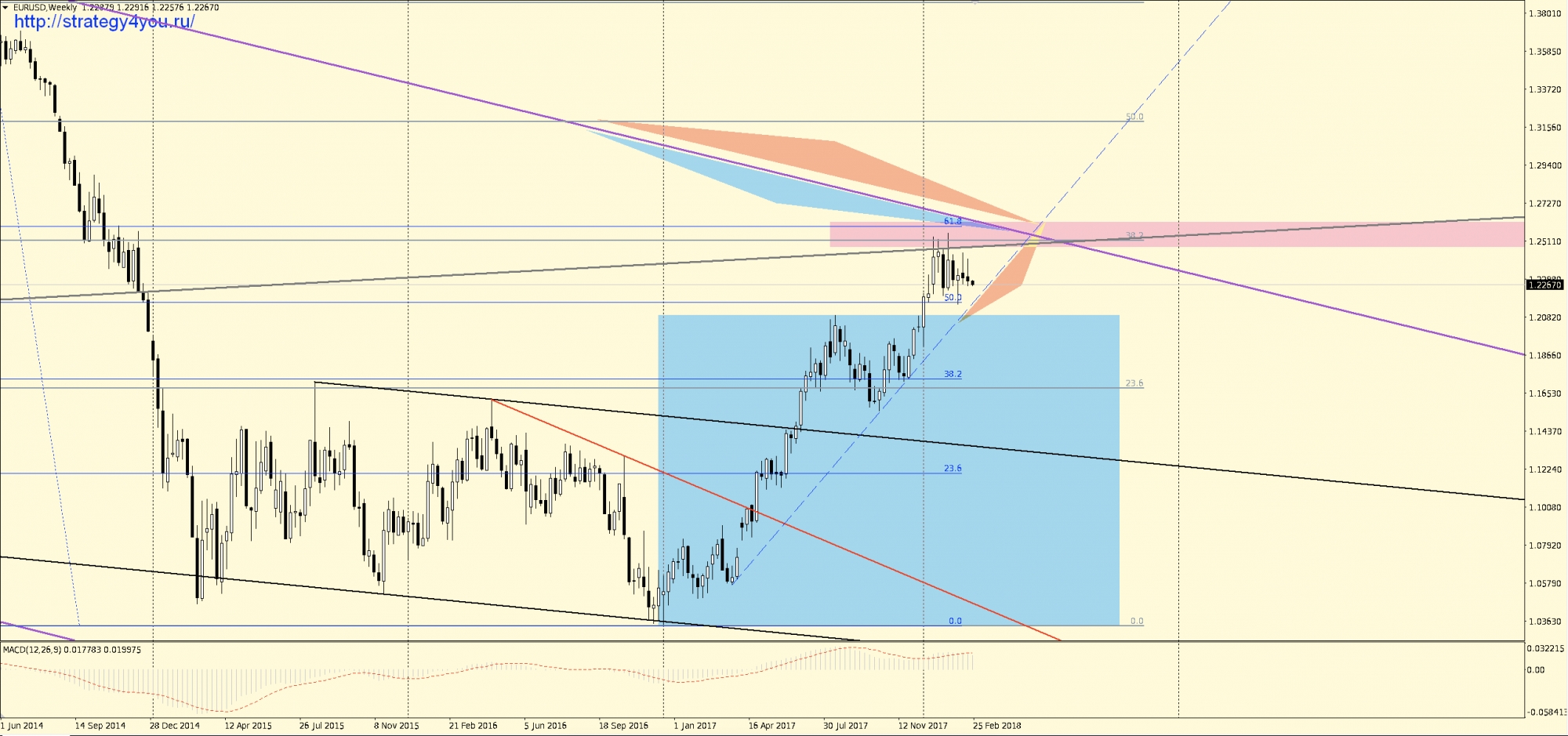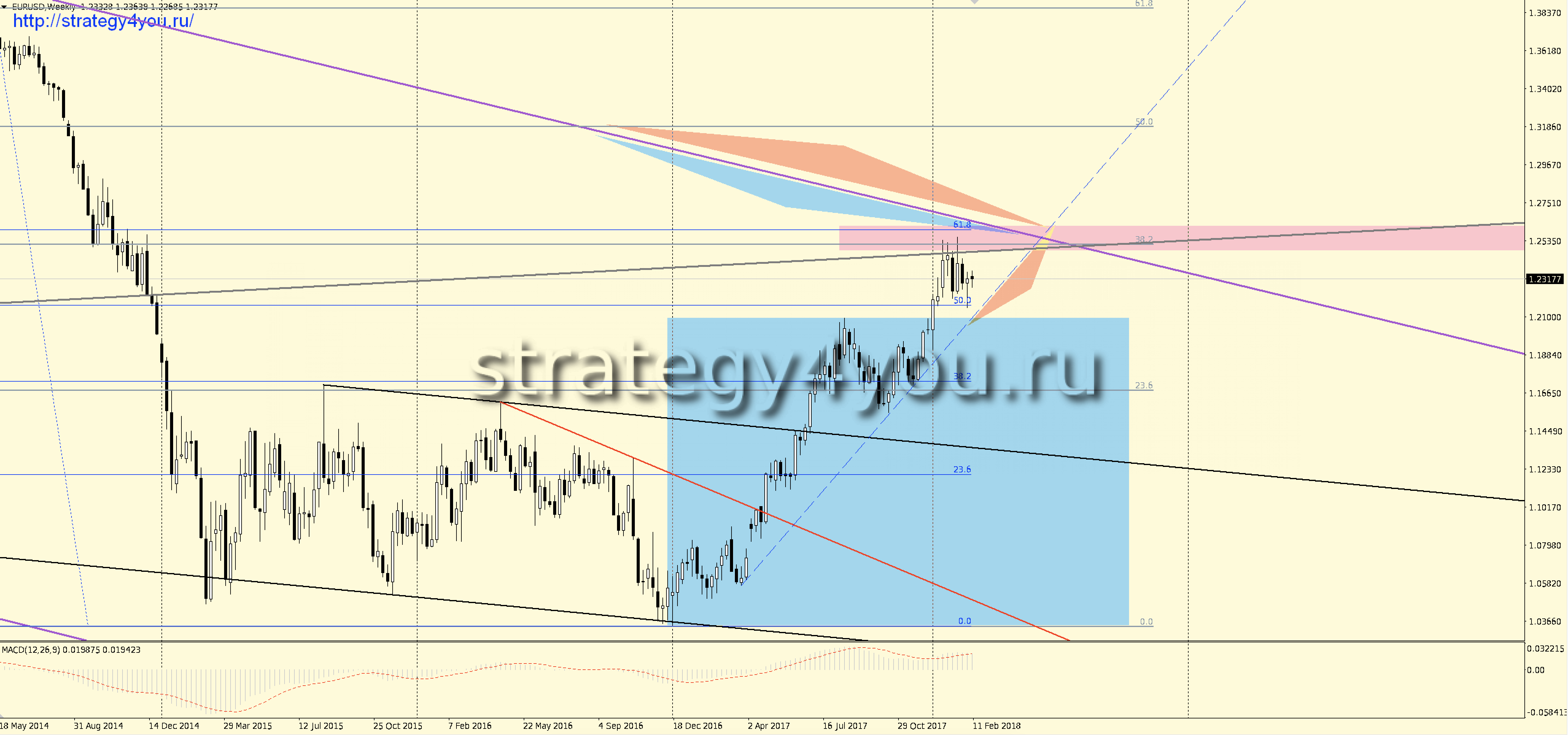 Видео прогноз EURUSD/евро-доллар на март 2018 + набор шаблонов МetaТrader 4 для графика: W1-D1-H1 с сигналами для интервала H1-H4
