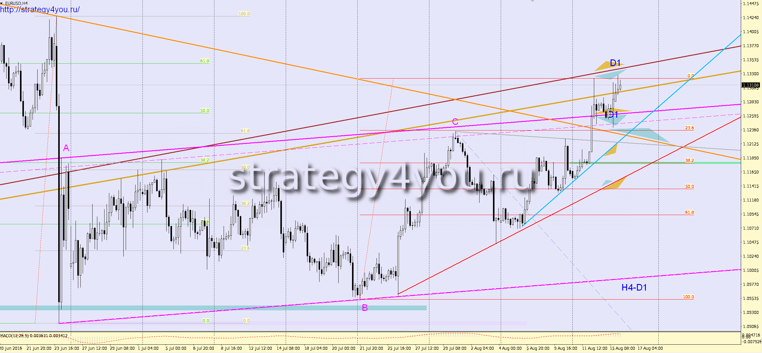 График так же рассматриваем H4 как минимум, потому и сигналы на интервале H4-D1 — они совсем не изменились с вчерашнего дня:
