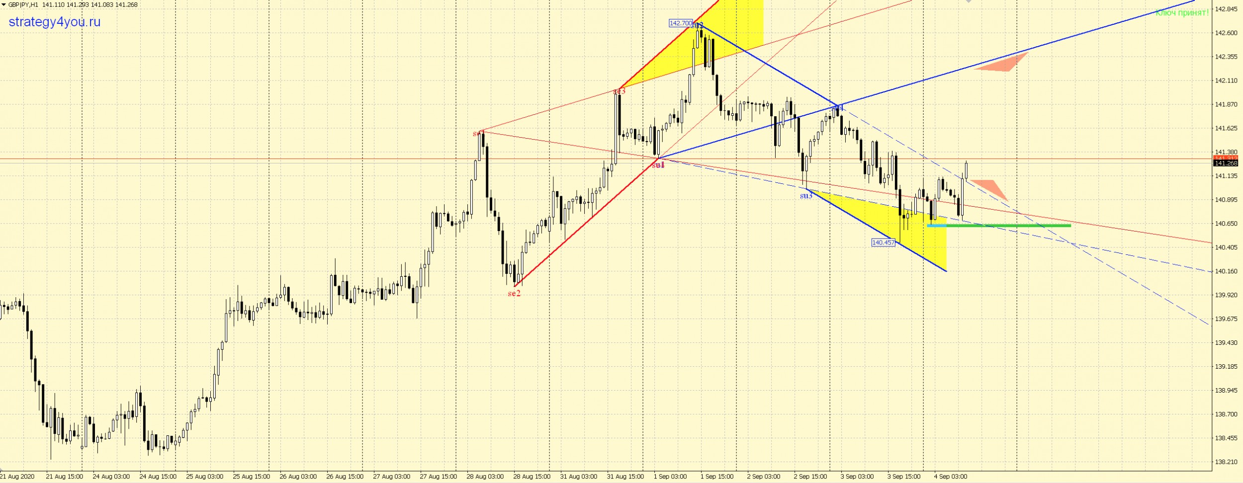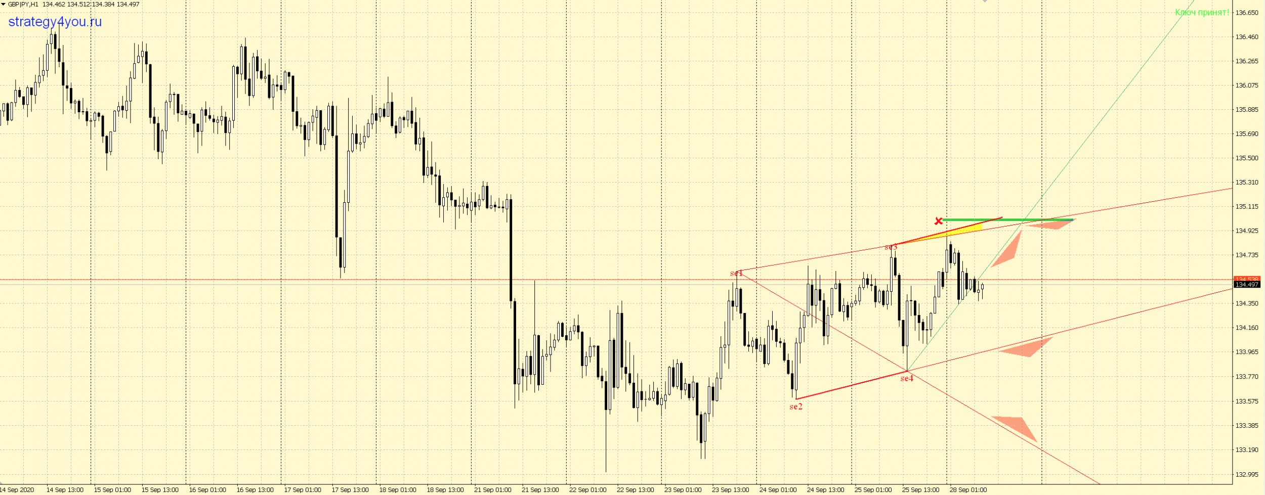 Сформирована ВВ по GBPJPY, в принципе сигнал уже получен, но лучше дождаться еще закрытия свечи отбоем от этой линии и тогда можно заключать сделку. Стоп указан, так же возможен повторный вход — после пробоя + ретест и отбой от линии 2-4.