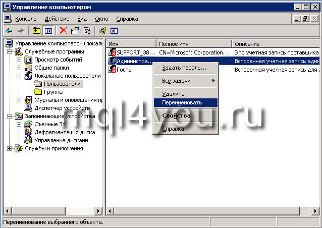 Нажмем правую кнопку мышки на учетной записи администратора:
