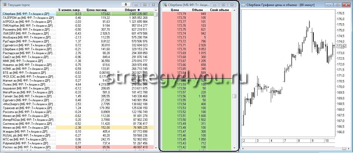 Аналог Level 1 на американском рынке — лента сделок в распространенной в России торговой программе QUIK находится в меню “Создать окно” и называется «Таблица обезличенных сделок». Поток данных может быть отключен по умолчанию и потребуется запросить у своего брокера о включении.