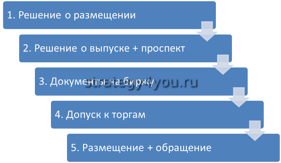 - Внутреннее согласование, принятие решения про размещение ценных бумаг.