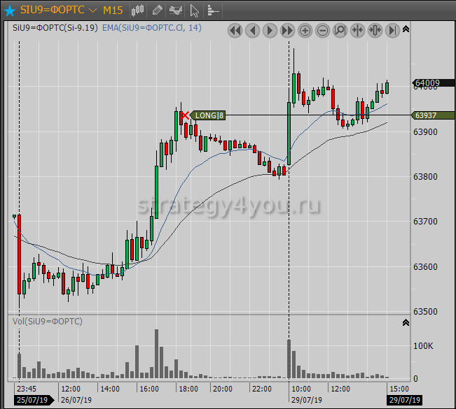 Фактическое количество купленных и проданных фьючерсов. На графике трейдеры могут увидеть существующий объем торгов, т.к. с ММВБ информация поступает во все биржевые терминалы. Это важно для инвесторов, которые учитывают степень поведения объема, когда решают покупать или продавать фьючерсы.
