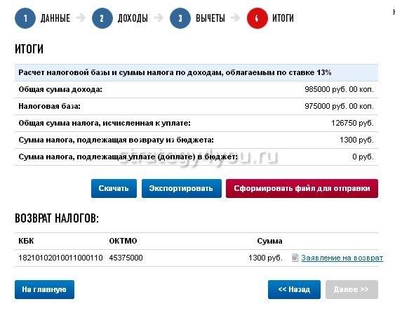 В разделе «Итоги» программа выведет на экран сумму той выплаты, которую позволяют вернуть уплаченные в казну налоги.