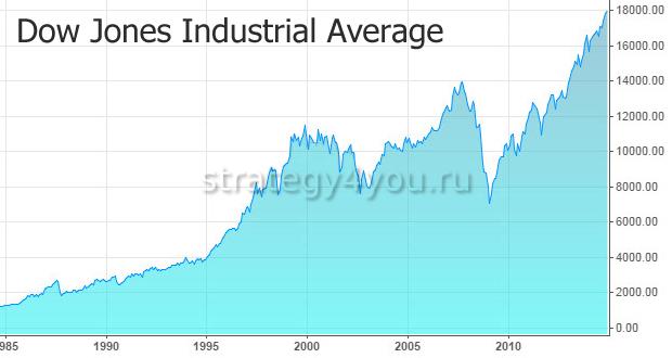 Следующее сильное ускорение пришлось на 80-е и 90-е гг. прошлого века. В марте 1999 г. была пробита очередная круглая отметка — 10000 пунктов. В начале XX в. на рынке наблюдалась высокая волатильность, а последнее мощное движение наверх началось в ноябре 2016 г.