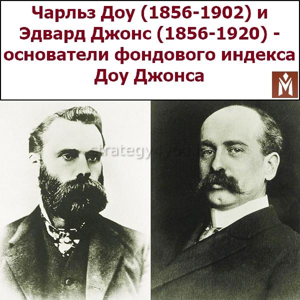 Основателями Dow Jones считаются редактор «The Wall Street Journal» Чарльз Доу и его компаньон Эдвард Джонс, которые и дали название показателю. В 1884 г. они рассчитали DJ Railroad Average — транспортный индекс Доу-Джонса. В него входило 11 компаний, 9 из которых занимались железнодорожными перевозками. Данный показатель использовался только для внутреннего анализа развития американского фондового рынка.