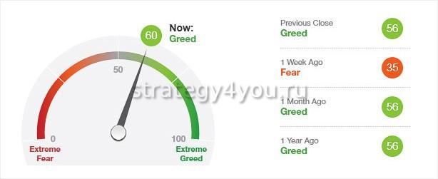 Основываясь на биржевом инструменте страха или жадности, американская компания CNN разработала свой «панический» датчик. Выглядит он как виртуальный спидометр, где граничными показателями являются 0 и 100, а отметка 50 показывает, когда страх переходит в жадность, и наоборот.