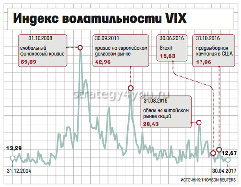 Среди них находится индекс волатильности, или «показатель страха/жадности/неуверенности», как его называют трейдеры.
