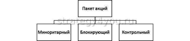 В классической схеме организации акционерных обществ существуют следующие виды пакетов ценных бумаг: