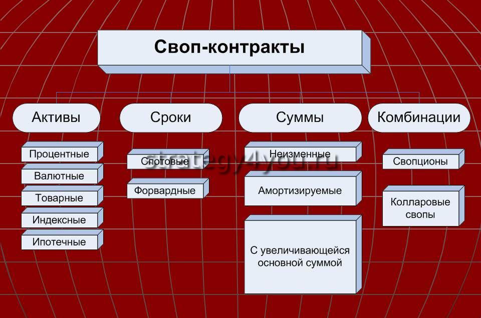 Валютный своп. В основе этого договора лежит обмен фиксированного процента и номинала в одной валюте на проценты и номинал в другой. Трейдеры должны понимать, что обмена может и не случиться. Чаще всего к подобным операциям прибегают, когда компания начинает осваивать рынки за границей. Ей сложно получить кредит, и соглашение о валютном свопе подписывается с партнером, работающим за рубежом.
