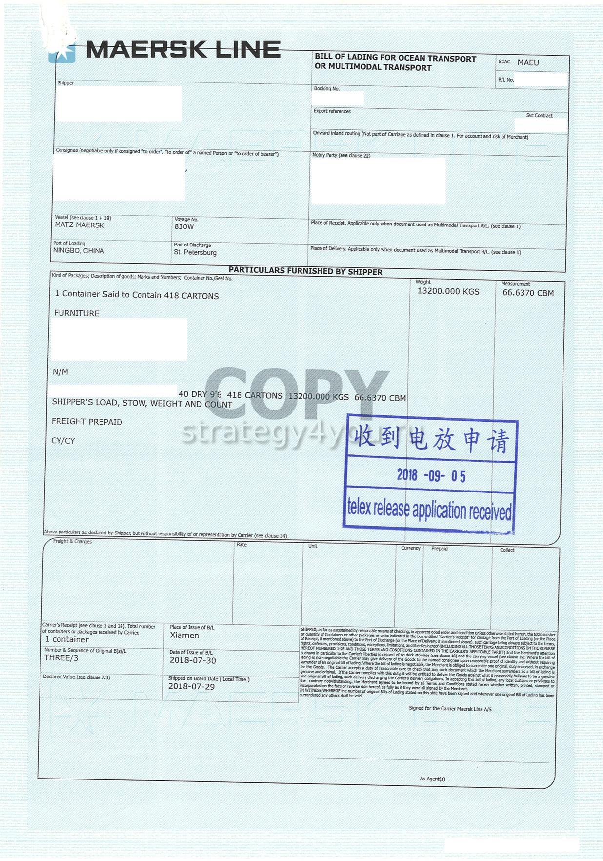 - коносаменты.