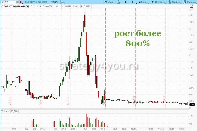 Еще можно сделать выборку компаний, которые генерируют денежные средства для вкладчиков. Для этого берутся ресурсы, такие как finance.yahoo.com, и выставляется сортировка по цене до 20$, по объему — более 100 тыс. Затем выделяют ценные бумаги с самым большим недельным ростом стоимости, прирост цены должен быть 50-100%. В последующие несколько дней хорошая модель должна сделать 3 высокие свечи или больше.