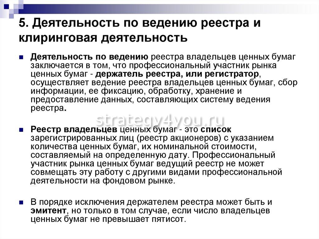 В то же время такие люди не имеют права распоряжаться самими бумагами по своему усмотрению. За свою деятельность реестродержатели получают оговоренное в договоре вознаграждение. При этом действует принцип, согласно которому доход подобных компаний не должен превышать расходы на ведение перечня.