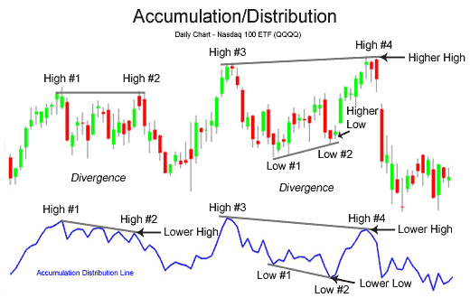 Accumulation/Distribution — индикатор, помогающий определить, как дальше поведет себя тренд. Например, если графики А/D и цены совпадают, то биржевик начинает искать точку входа в сделку, т. к. предмет торгов считается подтвержденным.