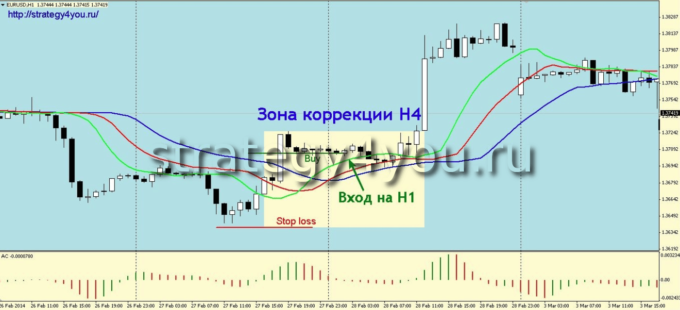 Торговля по «Аллигатору» на коррекциях