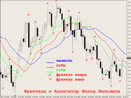 - Пример — стратегия «Alligator и Fractals»: