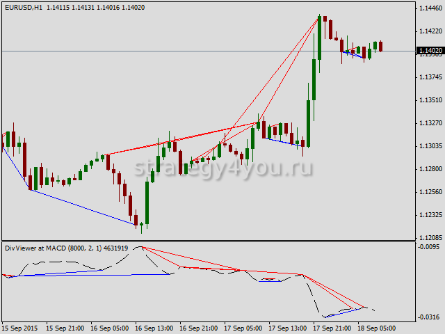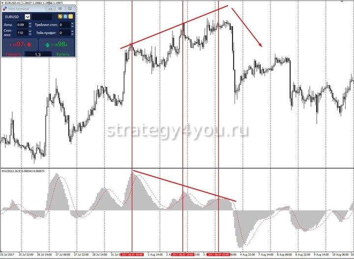 - Пример стратегии на дивергенции MACD: