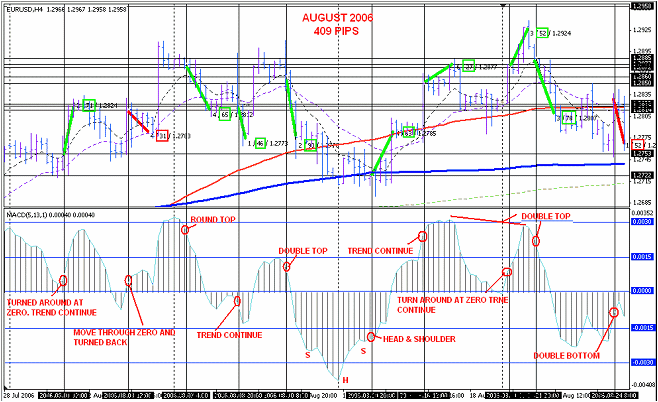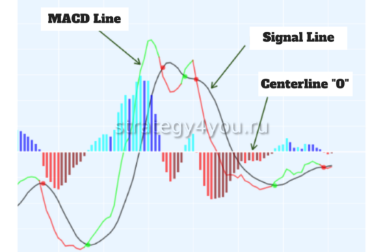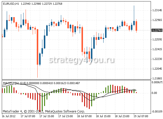 Одна из возможных стратегий торговли с использованием в качестве основного инструмента технического анализа MACD: