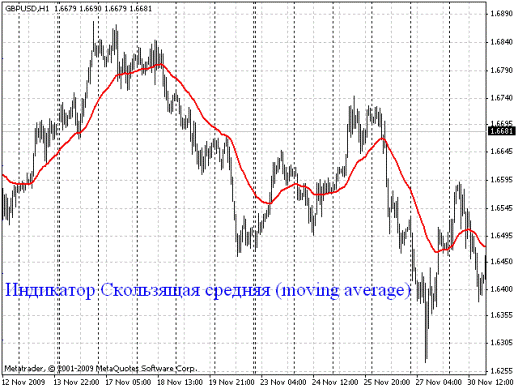 Мувинг может быть применен и к индикаторам. Интерпретация скользящих средних индикаторов осуществляется аналогично интерпретации ценовых скользящих средних. Когда индикатор поднимается выше средней, это говорит про продолжение восходящего движения, когда же индикатор опускается ниже средней, это свидетельствует про продолжение его нисходящего движения.