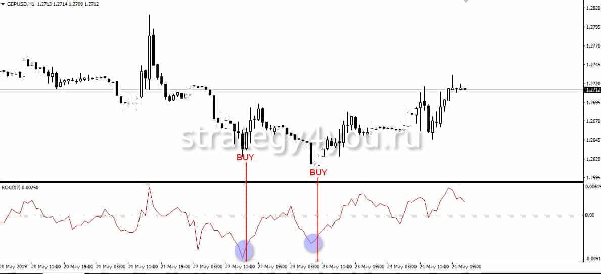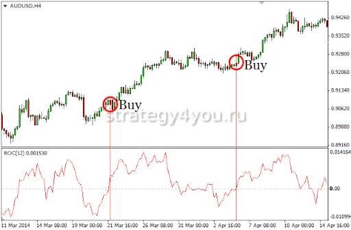 - Если Rate Of Change подает сигнал о пересечении установленной линии — восходящая тенденция усиливается.