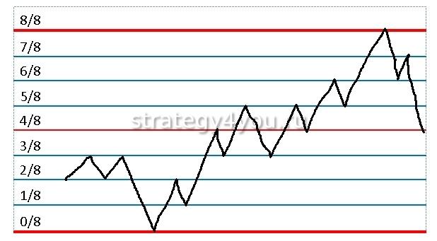 - 0/8 и 8/8 – наиболее сильные, здесь цена может развернуться в другую сторону.