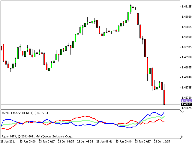 - Azzx EMA Volume – функционирует по методу разложения тикового объема. Скачать — Azzx-EMA-Volume.