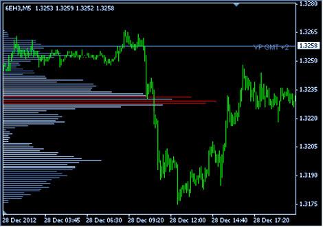 6) Горизонтальный индикатор объемов MT4 – строит гистограмму, которая отображает объемы заключенных сделок по той или иной цене без привязки ко времени. Гистограмма создается в окне терминала, каждый ее столбец можно легко сопоставить со значениями котировок и сделать выводы касательно реакции рынка на то или иное значение котировки, об изменениях объемов в сравнении с ценовым уровнем.