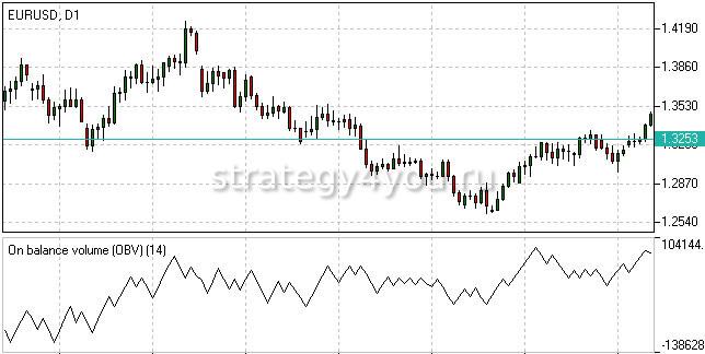 2) Часто используют трейдеры индикатор балансового объема OBV, который создал Джозеф Гранвилл. Инструмент актуален для дополнительного подтверждения направления тенденции в моменты, когда показатели пребывают в сравнительно спокойном состоянии. Чаще всего за основу берут данные торгов за один день на закрытии.