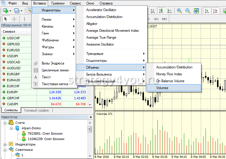 Индикаторы объемов для МТ4 представлены в достаточно ограниченном количестве, некоторые — лучшие из них, есть в стандартном наборе торгового терминала, другие можно без труда найти и бесплатно скачать в Интернете и в частности на этой странице (выше и ниже по тексту).
