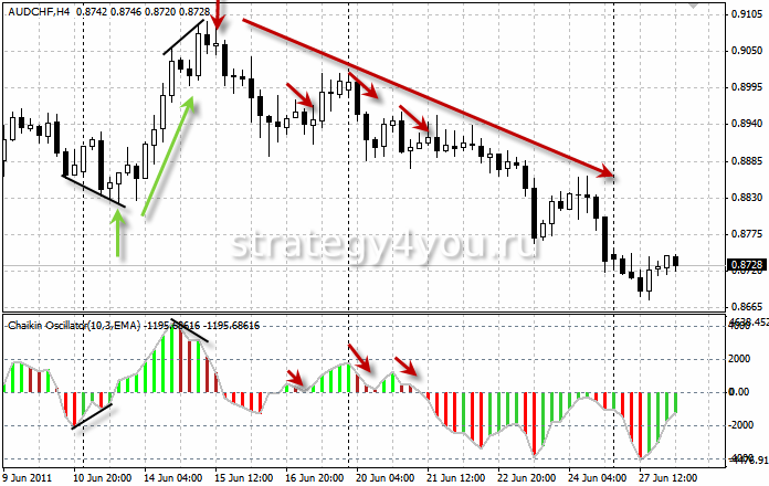 2) Осцилляторы, которые отображают информацию в формате графика изменения настроений рынка (индикатор Клингера, осциллятор Чайкина — скачать можно по ссылке)