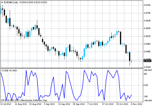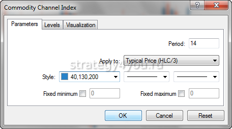 Этот финансовый инструмент определяет разницу между действующей ценой актива и среднестатистической в заданном временном интервале. Полное название индекса — Commodity Channel Index (CCI). Инструмент представляет собой осциллятор с показаниями в диапазоне от +100 до -100.