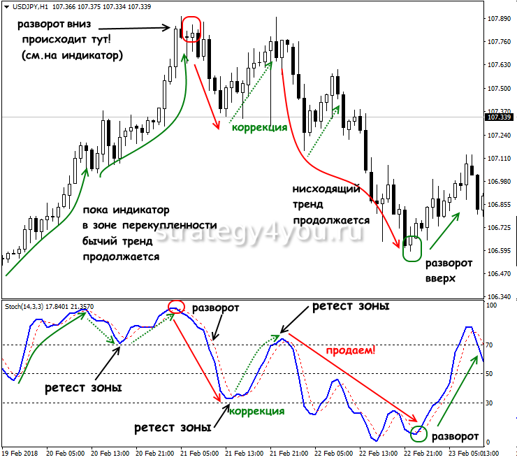 Стохастический осциллятор преимущественно используется для прогнозирования трендовых разворотов.