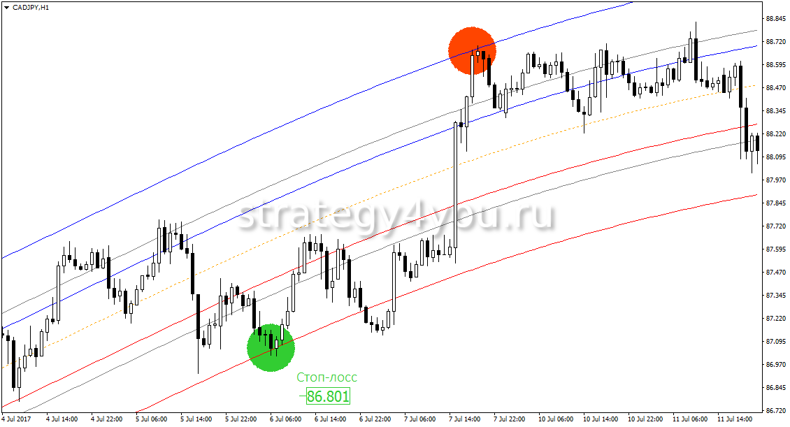 Выполнив построения и определив границы колебания стоимости, когда рынок находится в боковом тренде, можно зарабатывать на минимальных изменениях котировки.