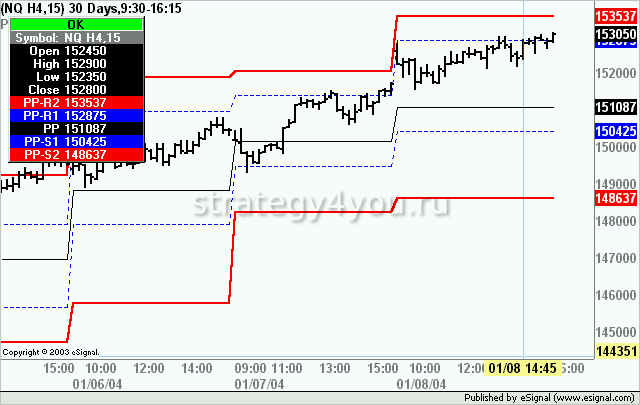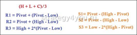 - В тех случаях, когда одинаковые цены открытия и закрытия, для расчета применяют правило: PP = 2 * Close[D-1] + High[D-1] + Low[D-1].