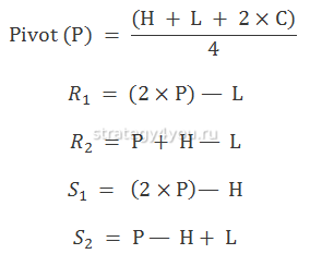 Часто новички ищут информацию о расчете Пивота Вуди. Стоит подчеркнуть, что это то же, что и формула Woodie pivot (мы рассмотрели ее выше).