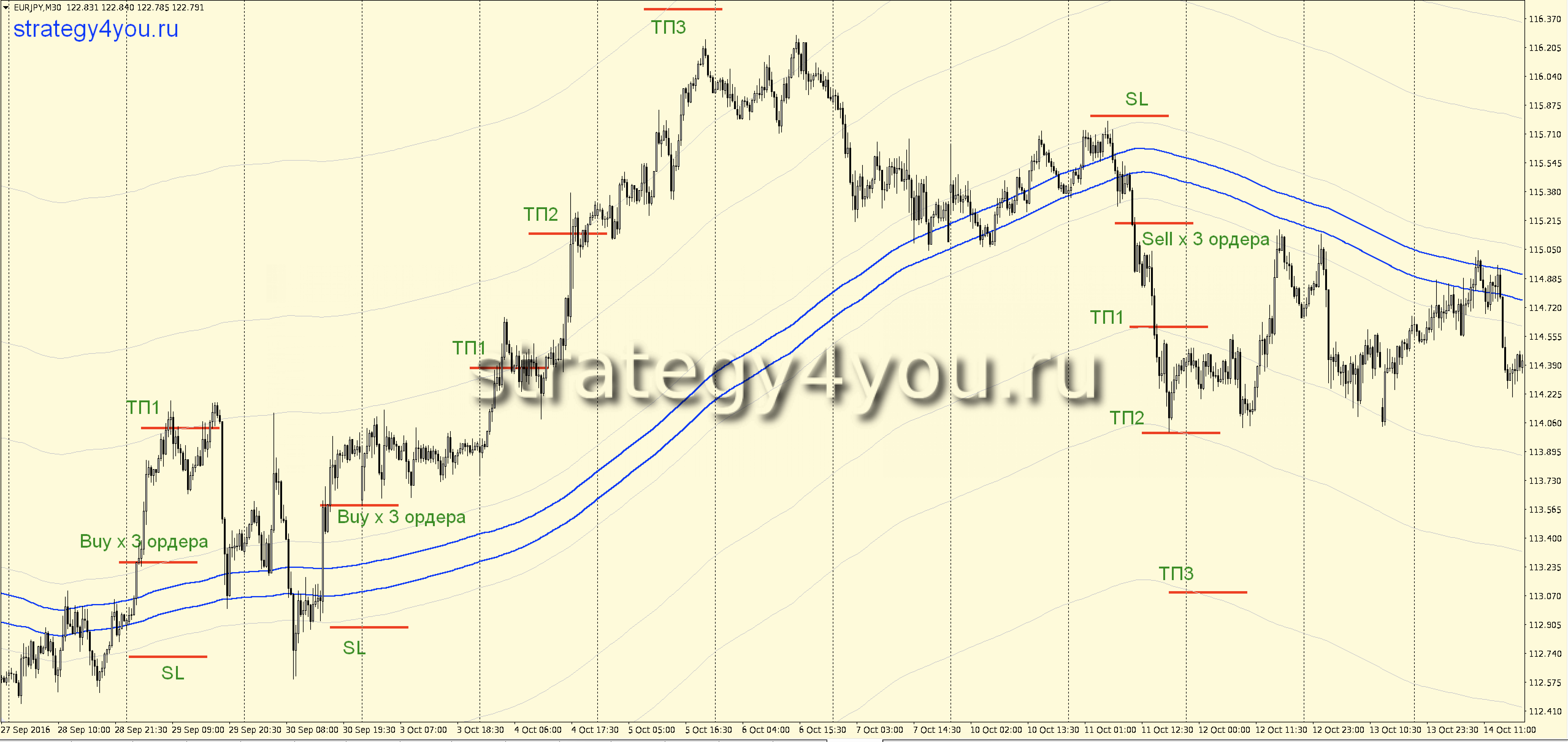 Ценовой диапазон задается пользователем, чтобы отследить тенденцию движения колеблющейся цены. После того как поступает сигнал для открытия сделки, нужно дождаться подтверждающего оповещения, что ситуация не изменилась. Чтобы скользящие отразили более точную картину, диапазон не должен быть слишком большим. В противном случае будут пропущены моменты потенциальных сделок.