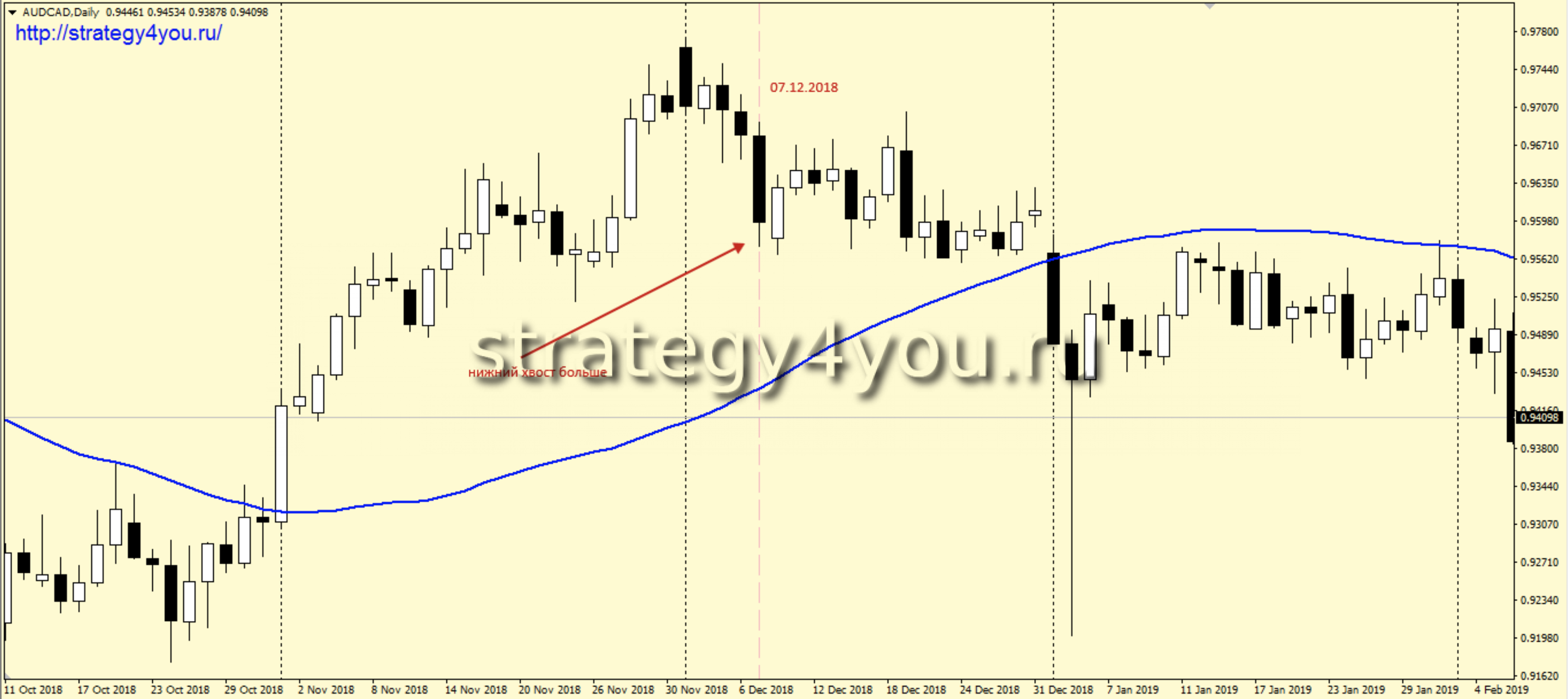 Данная МА отличается простотой и наглядностью: сглаживая колебания свечей, она показывает направленность движения. Нужно обращать внимание и на положение графика цены. Если он находится выше линии, направленной вверх, это говорит о преобладании бычьего рынка. Обратная ситуация (ценовая кривая под нисходящей МА) свидетельствует о медвежьем рынке.