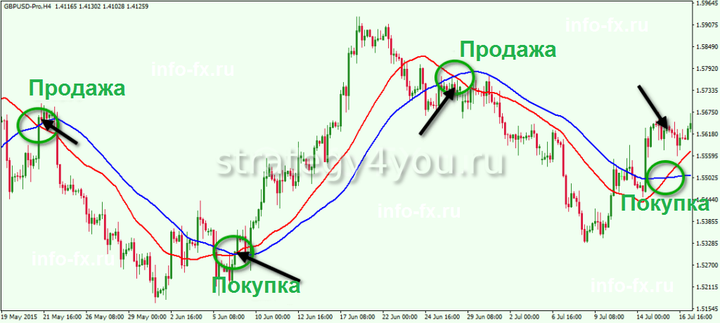 Чтобы создавать собственные стратегии, нужно ознакомиться с базовыми видами. На их основе можно выстроить большое количество вариантов и выбрать наиболее эффективные для торговли по скользящим.